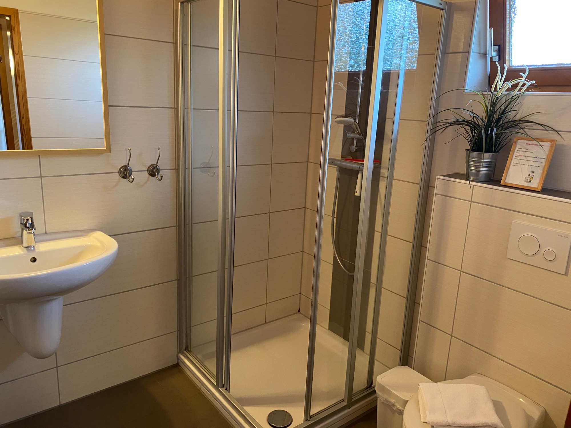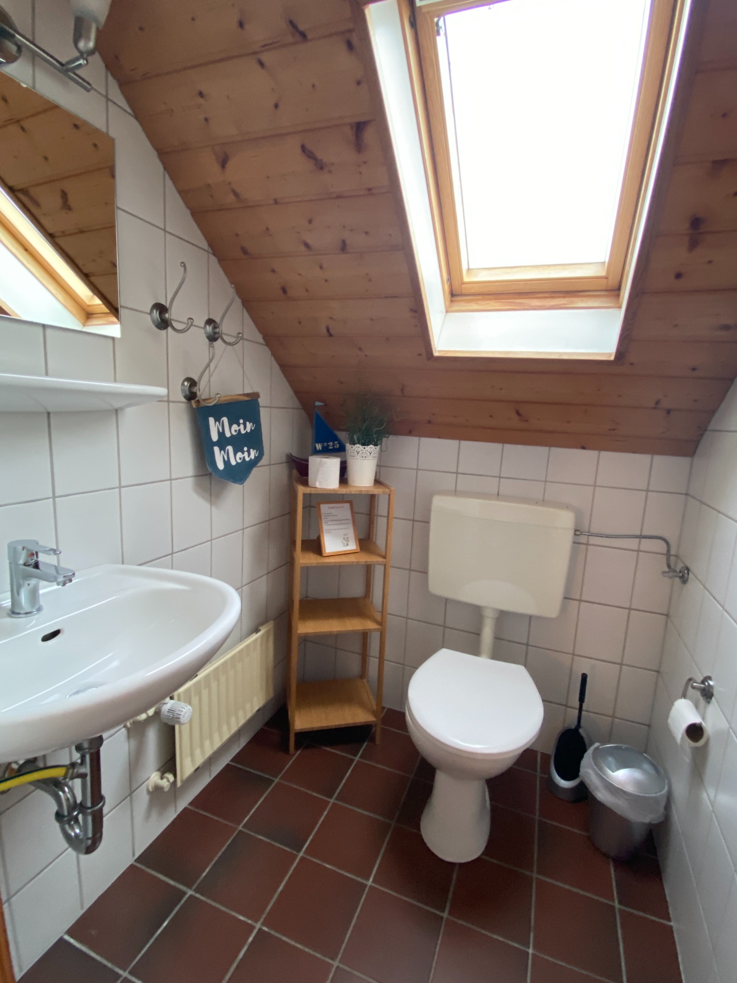 Im Erdgeschoss gibt es ein voll ausgestattetes Bad mit Dusche und im Obergeschoss ein kleines Bad mit Toilette und Waschbecken. Ein Fön ist vorhanden und eine Waschmaschine für die kleine Wäsche zwischendurch gibt es auch.